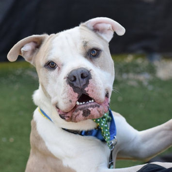 My previous foster writes: When I first picked Santi up from the shelter we were able to hang outside for a few to see if we were a good match. She just hopped up right next to me and was completely chill. I quickly began to realize how much of a lover this girl really was. It was an immediate yes and we went home. Santi has very clearly been overbred and neglected. It truly is so amazing how she has such an incredible demeanor despite what she's been through. She is the biggest cuddle bug and a gentle giant. Santi knows sit stay and down and is crate trained!!! Anyone would be so lucky to adopt this girl. She really is my best foster to date.